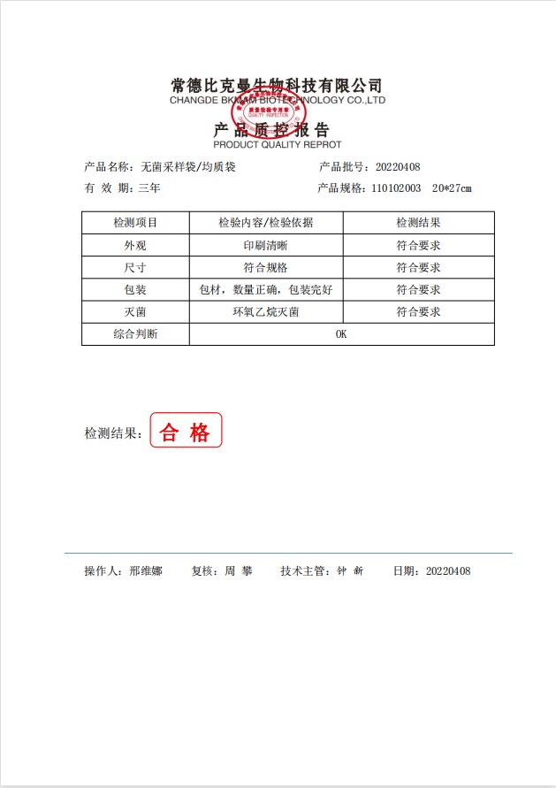 立式無(wú)菌采樣袋 20x27(帶壓條) 100個(gè)裝 110102003 20220408