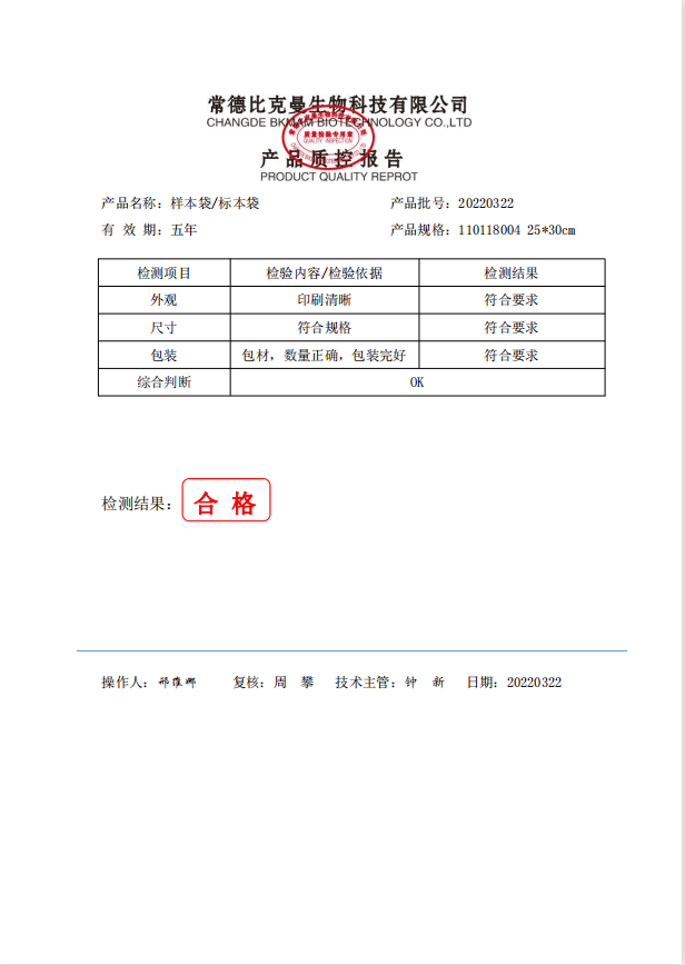 比克曼生物 樣本袋 25x30cm 100個(gè) 袋 110118004 20220322