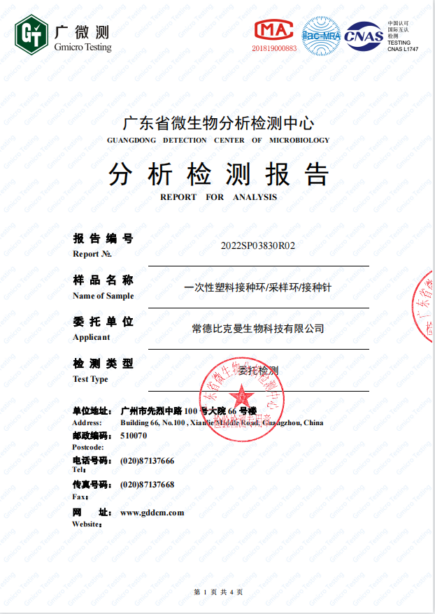 第三方報告 2022SP03830R02一次性塑料接種環(huán)&采樣環(huán)&接種針 20220408