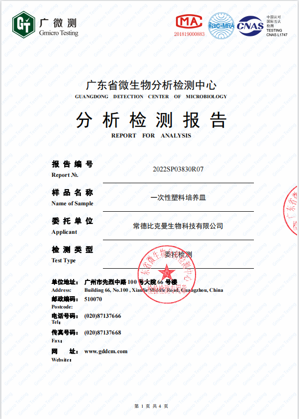 第三方報告 2022SP03830R07-一次性塑料培養(yǎng)皿 20220408