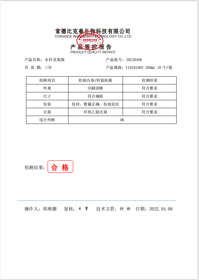 水樣采集袋 200ml 10個(gè)袋 110101003 20220408