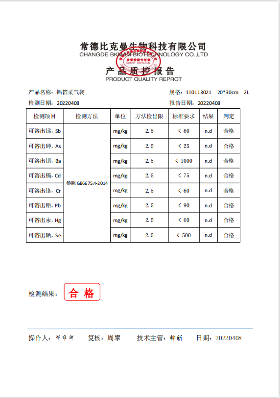 比克曼生物 雙閥門鋁箔采氣袋 20x30cm 2L 110113021 20220408