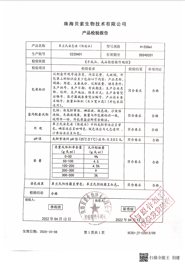 貝索 革蘭氏染色液(快速法) 250ml4盒 BA4012 C220401