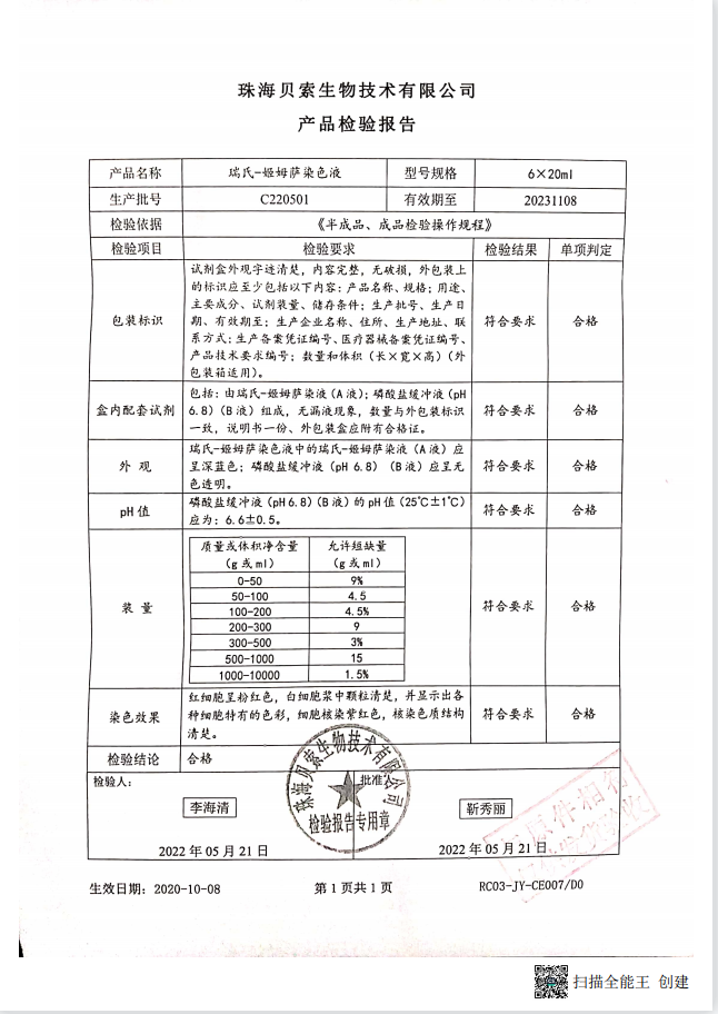 貝索 瑞氏-姬姆薩染色液 20mlx6 C220501