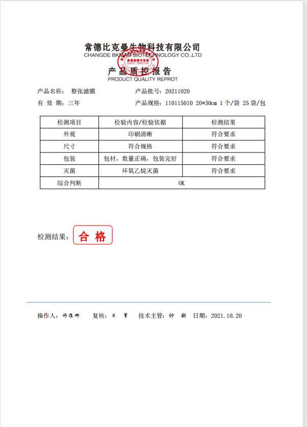 整張濾膜 (PE包裝) 20x30cm 1個袋 25袋包 110115010 20211020