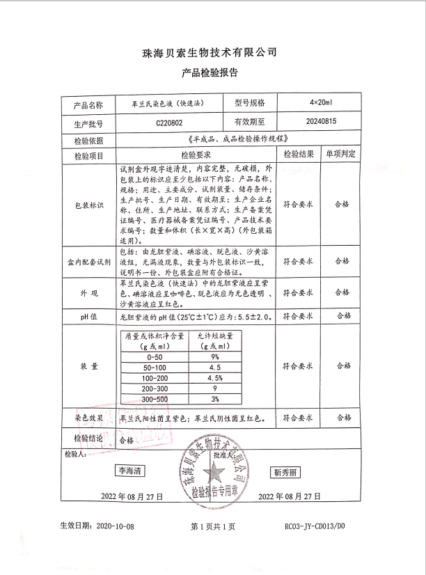 貝索 革蘭氏染色液(快速法) 20ml4盒 BA4032 C220802