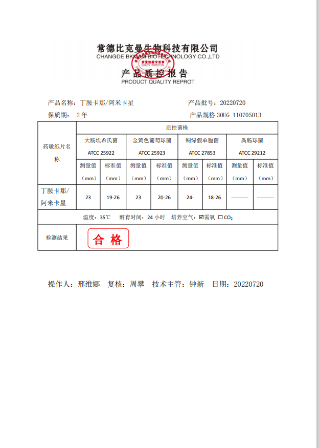 110705013 阿米卡星 30UG 20片瓶 20220720
