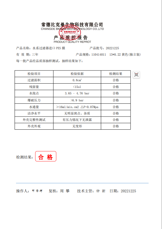 110414011 比克曼生物 水系過濾器 進口PES膜 13x0.22 黃色 (獨立裝) 20221225