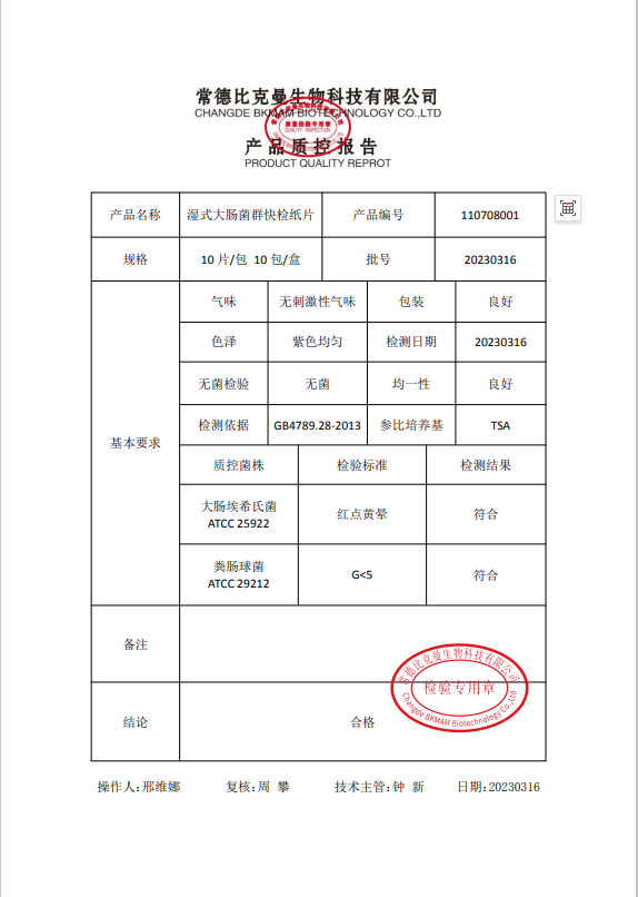 110708001 比克曼生物 濕式大腸菌群快檢紙片 100片盒 20230316